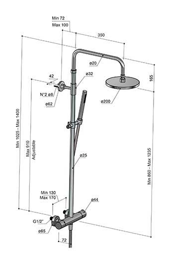 Set doccia con miscelatore termostatico, soffione 20 cm e doccetta