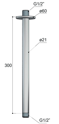 Braccio a soffitto per soffioni doccia, lunghezza 30 cm