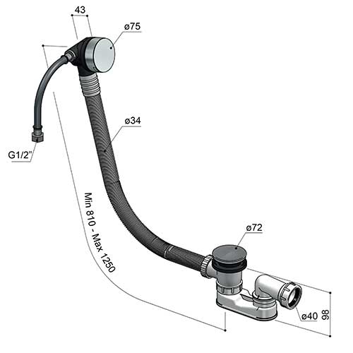 Colonna di scarico per vasca con erogazione e con troppo pieno