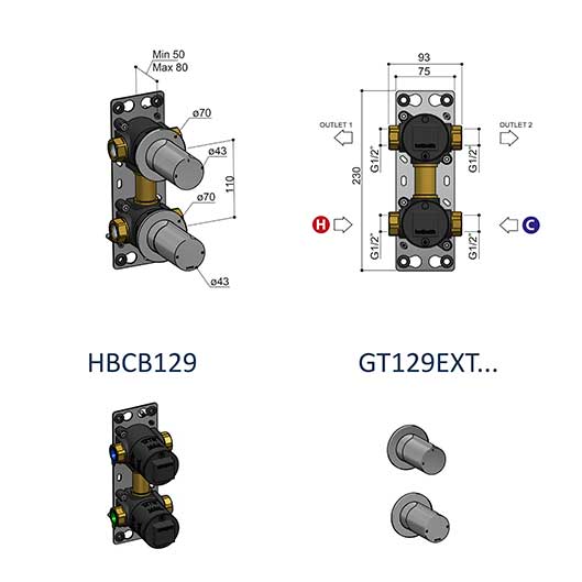 Miscelatore da incasso per doccia, con deviatore a 2 vie